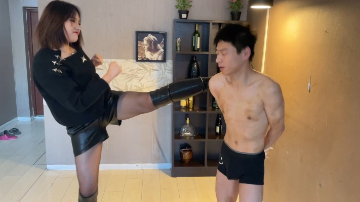 格式:1280*720 横屏 高清 内容:身高187的巨人女S VS 身高169 瘦鸡男M 反差感极强的一部作品,女主对男M进行暴力踢击和踩踏,身高体重的优势让女主每一脚对于男M来说都是重击,最后男M伤痕累累被驯服,跪在女主前舔舐着女主的黑色皮靴。