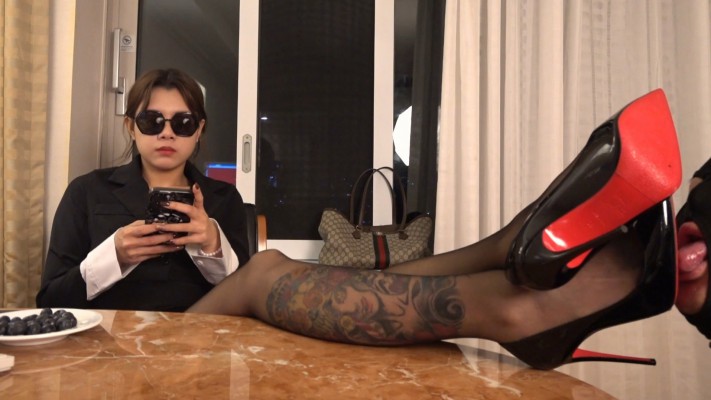 视频质量尺寸:1920*1080 内容: CL高跟鞋和黑丝小西装真的是绝配,不过这种小牛皮鞋底是需要经常进行保养的,最好的保养时机就是在办公室有电脑处理公司事情的同时,让工具奴跪在下面充当人形鞋刷用它的舌头保养鞋底,保养完鞋底还可以让它再变成人形除臭器,用一下它狗肺的自净功能给我的丝袜除除臭,顺便拿它的脸当脚垫和暖脚器。 有横屏和竖屏两版(不同机位不同剪辑)。