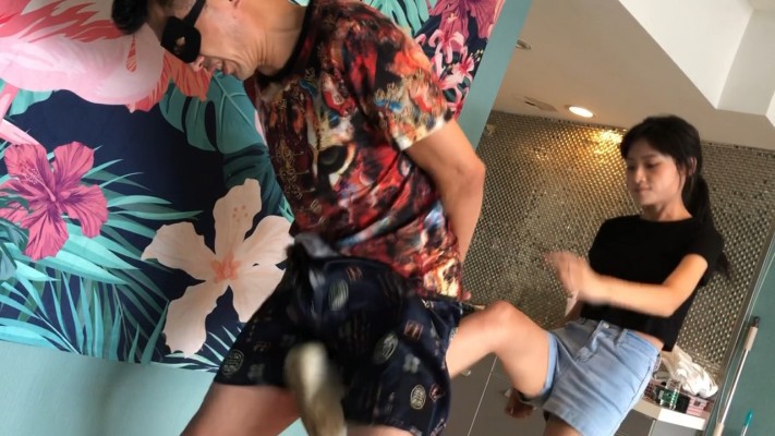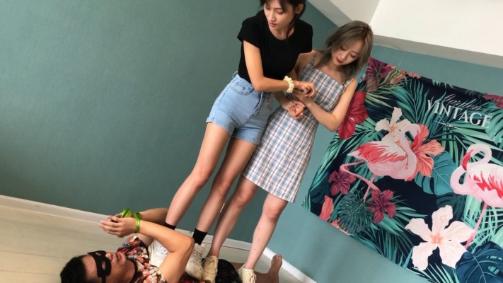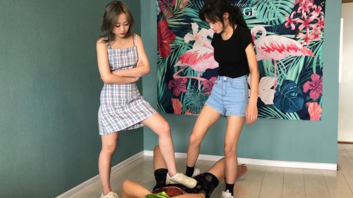 分辨率:1920*1080 横屏 内容:早期婉莹主和贝儿主(那时候贝儿还露脸出镜呢)的作品,主题是贝儿大学生兼职夜店啤酒销售女郎,近期总遭到一个社会大哥的骚扰,自称有钱想要包养贝儿,弄得贝儿无法正常工作十分苦恼,作为闺蜜的婉莹听闻此情况,决定出手帮助贝儿一次性解决问题,于是假装让贝儿电话约大哥来到宾馆聊天,兴致勃勃的大哥满怀期待赴了约,没想到等待他的,将是两位美女的超美腿爆蛋责罚。婉莹女主当年的踢裆力度,真的可以用恐怖来形容。。。请看图