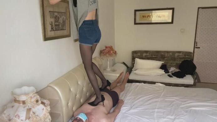 可怜的男生的肉体,在我的高跟鞋下面尽情的享受无尽的痛苦吧,黑色性感的高跟鞋配上黑丝,让我原本的全体重践踏也不那么疼了吧,高跟鞋的鞋跟嵌入到男生的肉体内感受如何啊,很痛吗,那就是我快乐的方式呢!看着他越来越痛苦的样子,我的脚下更加想进一步的折磨他了,鞋跟扎进他的ru头,旋转玩弄,好有趣,哈哈哈,我丝毫不在乎他的肉体在我高跟鞋下的痛楚,可是高跟鞋穿久了,我的美脚有点累了,我脱下高跟鞋,有点出汗微湿的黑丝美脚直接踩踏他的身体上,我模拟冲浪的动作不停地玩弄他,还用跳踩的方式尽情的疯狂的折磨他,最后直接踩住他的脖子给他致命的折磨!